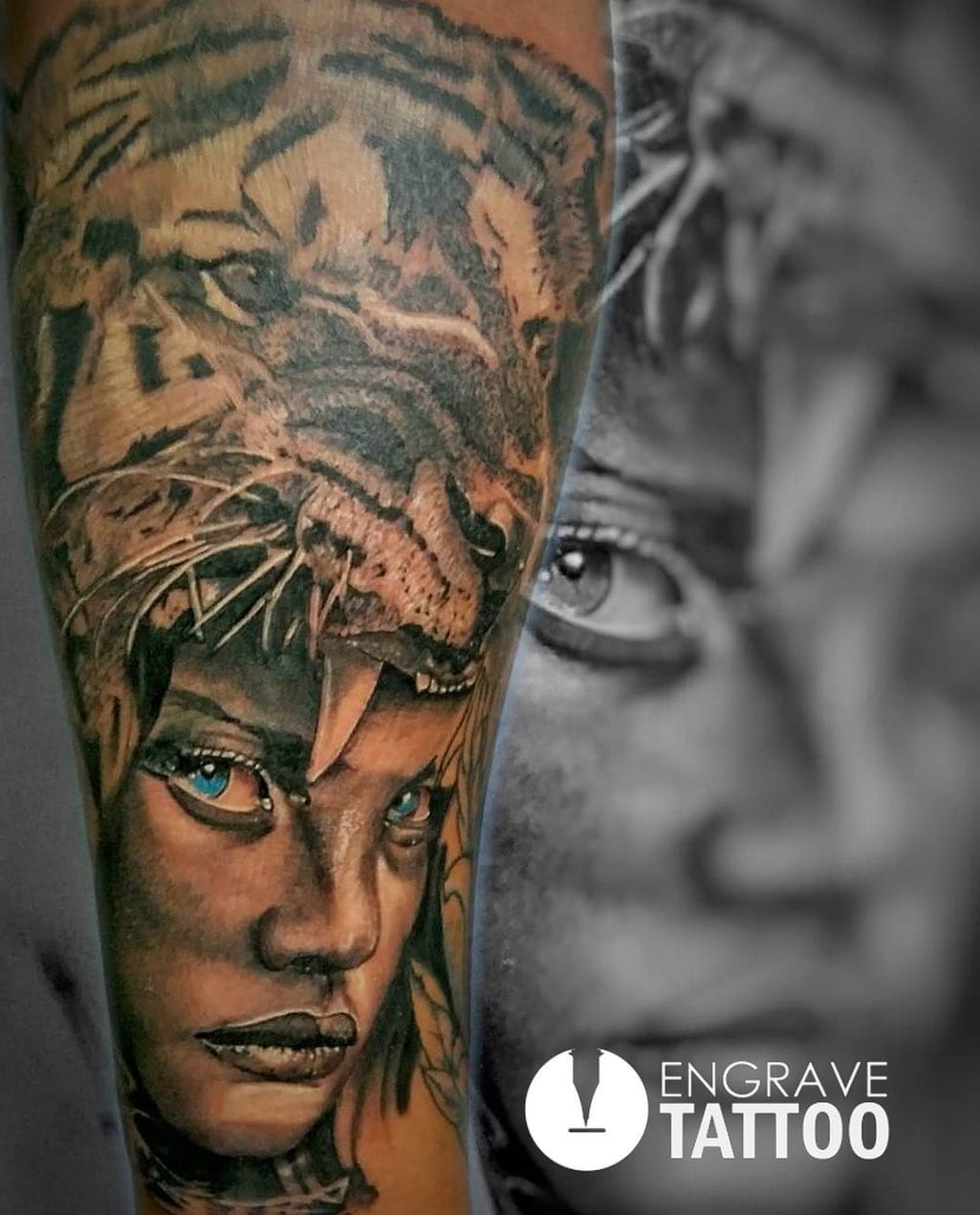 Engrave Tattoo Studio shows their perfection in human portrait tattoos, animal portrait tattoos, Religious Tattoos, travel-based tattoos, Mother Nature Tattoos, etc.