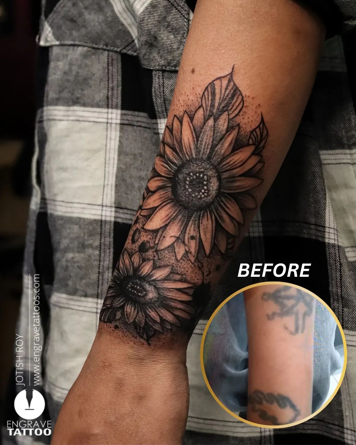 A cover-up tattoo is the finest solution to transform your old-style tattoo into a new stylish trendy tattoo. This type of tattoo design is a beautiful solution to transform any type of scar into a stunning tattoo design! This magical art of tattoo design is available at our studio.