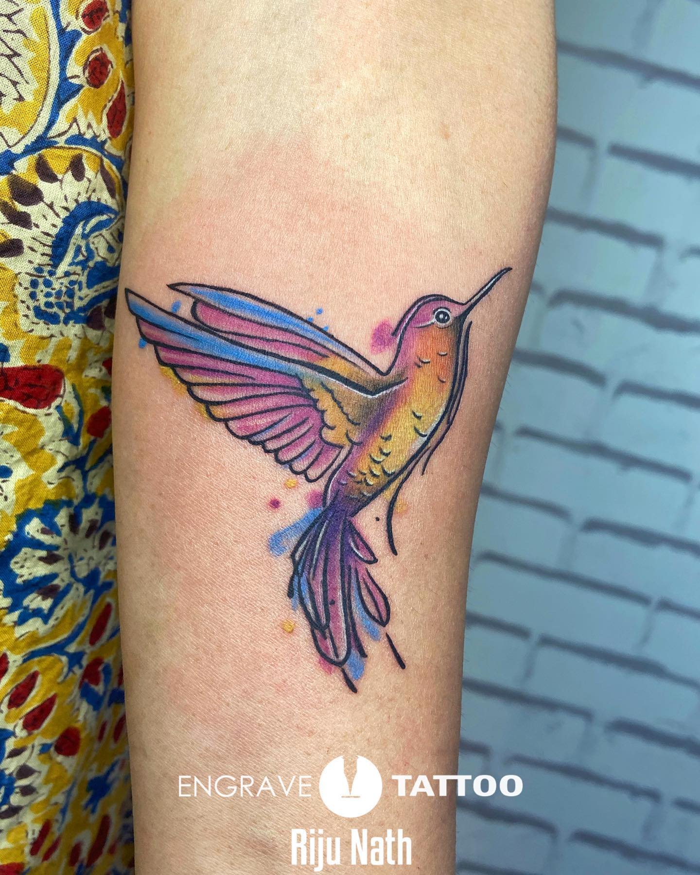 Watercolour tattoos are absolutely beautiful and eye-catching, and they look as if someone has painted your skin with a magical paintbrush. This magical style of tattoo includes a few dark foundation shades or blended hues. You can also make the piece meanS to you by the images of your choice.